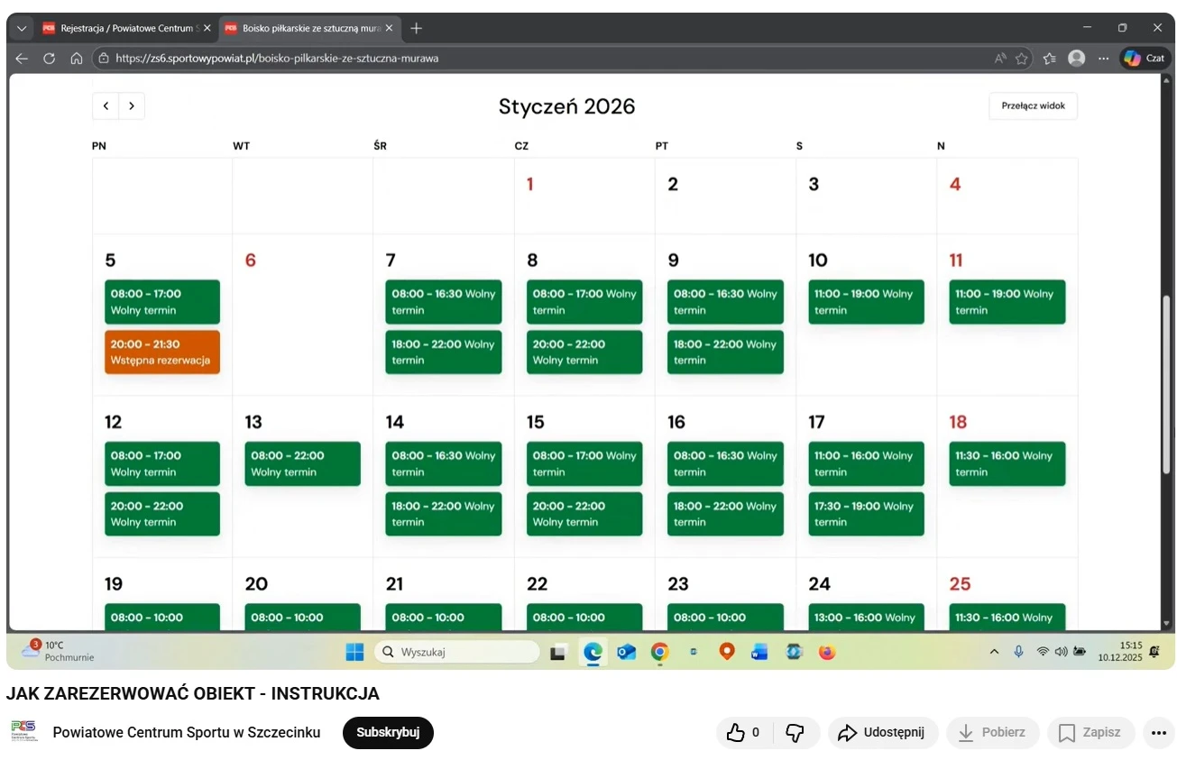 Boisko ze sztuczną nawierzchnią przy Zespole Szkół Nr 6 funkcjonuje od czerwca 2024 roku. W okresie zimowym cieszy się ogromnym zainteresowaniem klubów piłkarskich. Wychodząc im naprzeciw uruchomiliśmy rezerwacje online, które przyspieszą i ułatwią proces wynajmu. Od dziś na stronie sportowypowiat.pl można zobaczyć czy interesujący nas termin jest wolny, a następnie dokonać wstępnej rezerwacji. Pracownik obsługi skontaktuje się telefonicznie bądź mailowo i ustali wszystkie szczegóły.